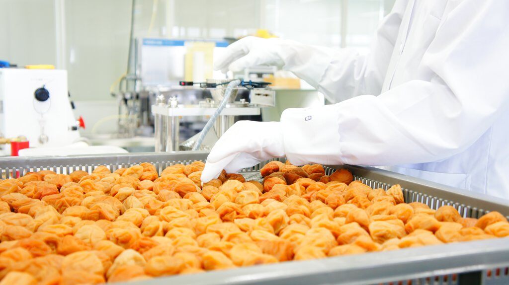 梅の状態を計測しながら約1カ月間、調味液に漬け込み、おいしく漬け上がった梅干を一度「乾燥器」にかけて、旨味をギュッと閉じ込めます。